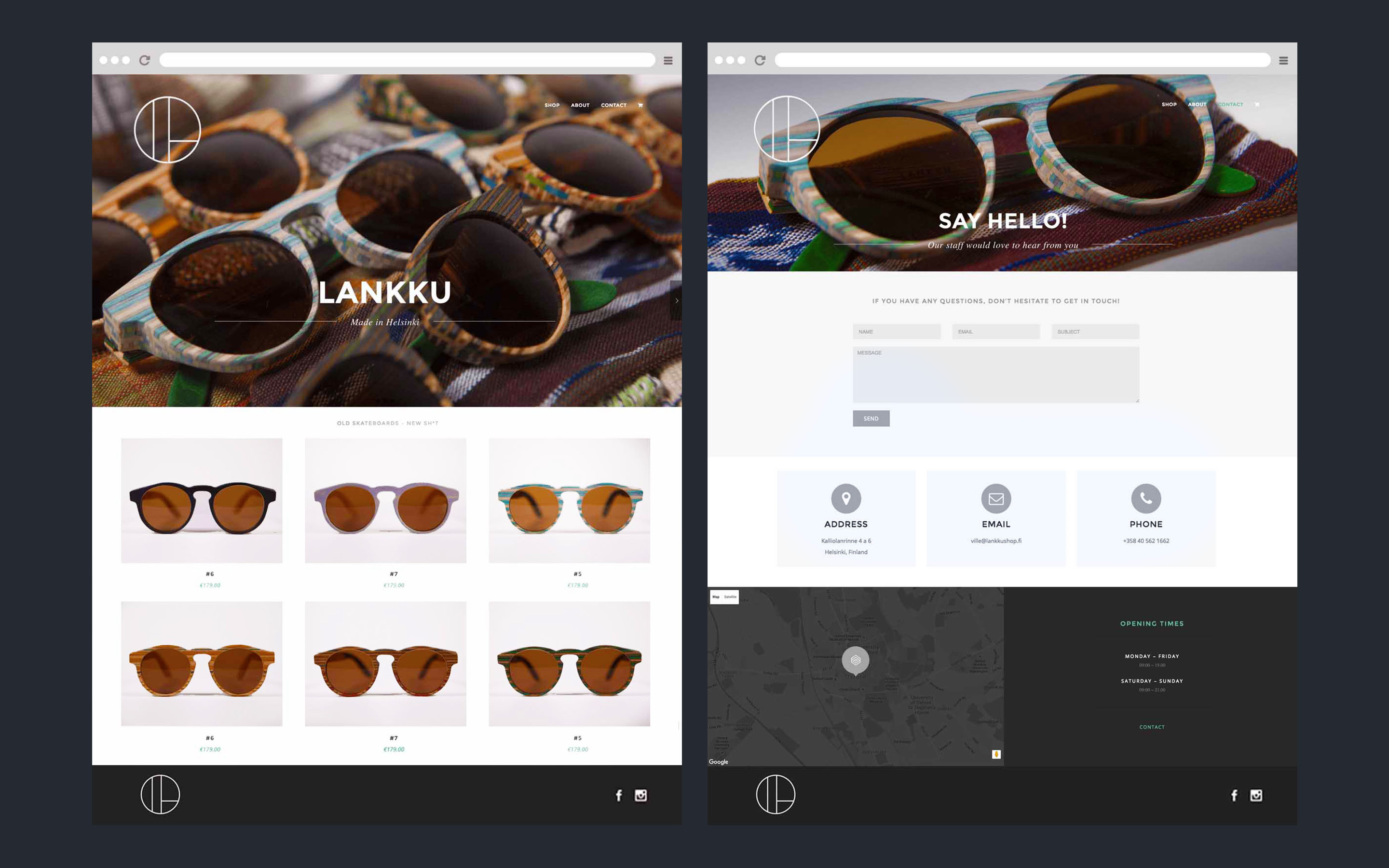 Lankku Eyewear was born from skate culture and crafted in Helsinki, Finland. Each pair of glasses is handmade from recycled skateboard decks, layered with scratches, colors, and stories from their past life. No two frames are ever the same, and I wanted the brand identity to carry that same spirit of individuality.